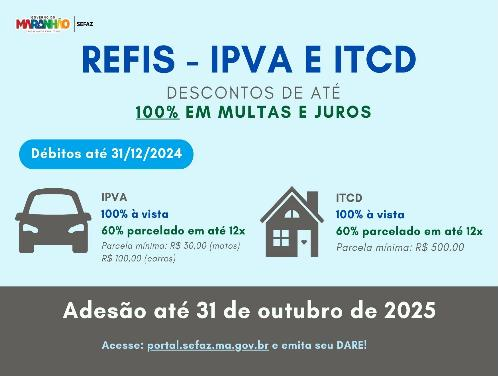 O Governo do Estado do Maranhão, por meio da Secretaria de Estado da Fazenda (Sefaz/MA), lançou o Programa de Pagamento e Parcelamento de Créditos Tributários – Refis 2025, destinado a contribuintes com débitos de IPVA e ITCD constituídos até 31 de dezembro de 2024, inscritos ou não em dívida ativa.