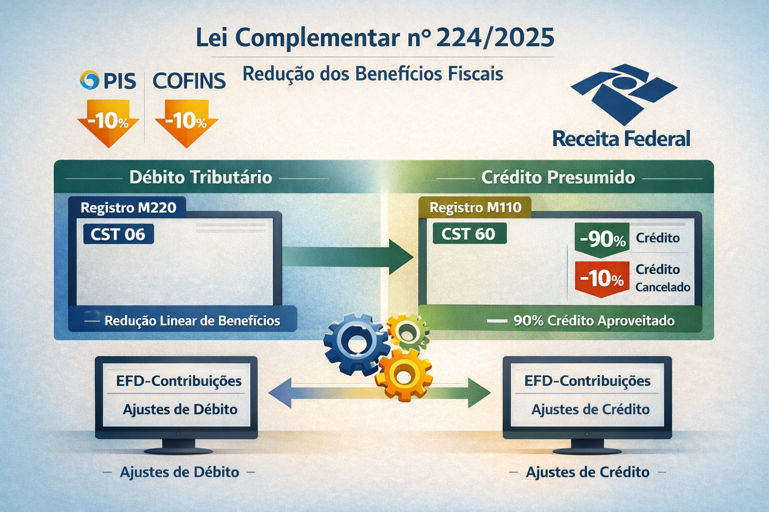 Em dezembro de 2025, foi aprovada a Lei Complementar nº 224, a qual instituiu a redução de 10% em diversos benefícios fiscais relacionados a tributos federais, tais como PIS, COFINS, IRPJ, CSLL, IPI e II.