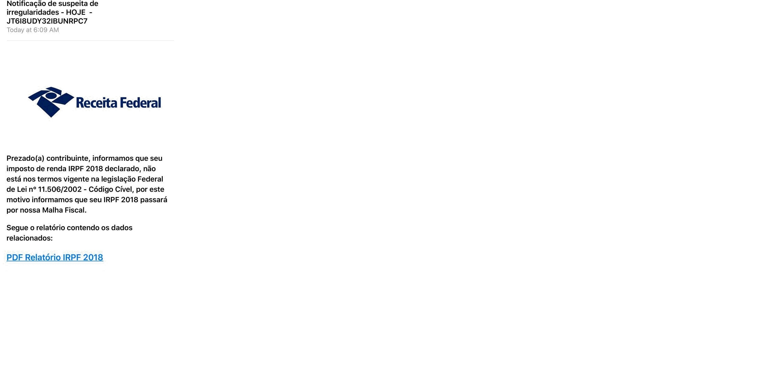 As notificações visam iludir o cidadão na tentativa de obter ilegalmente informações fiscais, cadastrais e financeiras