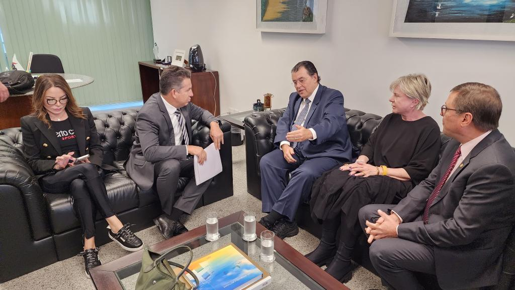 Ele se reuniu, nesta quarta-feira (01.11), com o relator da reforma, o senador Eduardo Braga, em Brasília. A primeira-dama Virginia Mendes e os senadores Mauro Carvalho e Margareth Buzetti acompanharam a agenda.